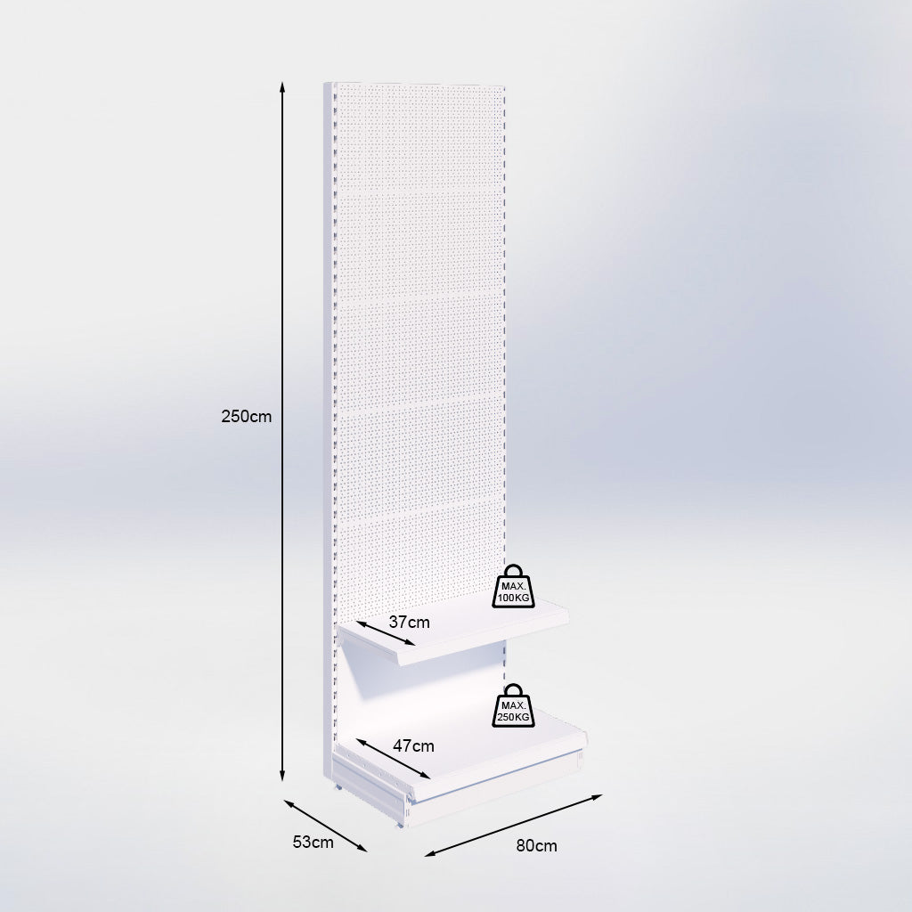 Wandstelling perforatie - H250 x B80 x D47 cm - 2 niveaus - Grijs