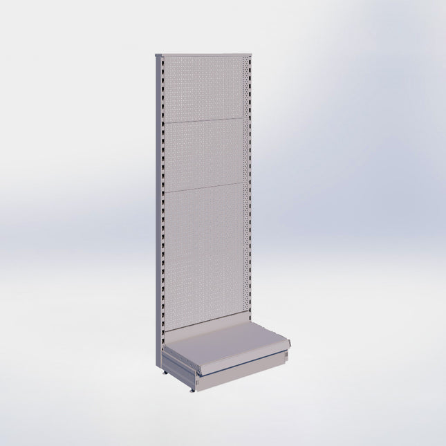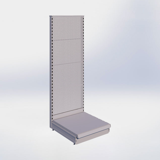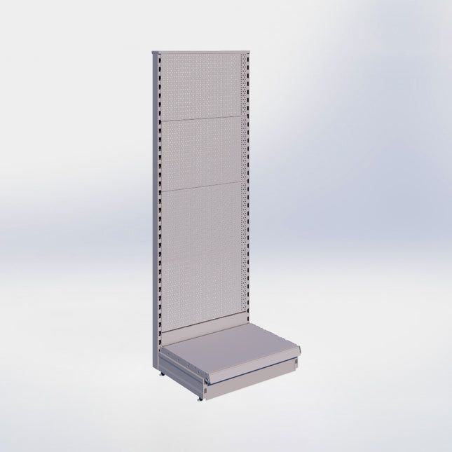 Kopstelling perforatie - H140 x B66,5 x D57 cm - 2 niveaus - Grijs Montagevideo: Kopstelling montage video Deze aanbouw- of beginsectie bestaat uit:- 2 staanders H140 x B3 x D6 cm RAL9006 (aanbouwsectie bevat 1 staander) - 2 voeten H16 x D57 cm RAL9006 (aanbouwsectie bevat 1 voet) - 1 legplank L66,5 x D57 cm RAL9006- 1 legplank L66,5 x D47 cm RAL9006- 2 plankdragers D47 cm RAL9006- 2 achterwanden geperforeerd H40 x B66,5 cm RAL9006('achterkant afgewerkt' bevat 4 achterwanden)- 1 achterwand glad H40 x B66,5 cm RAL9006 - 1 achterwand glad H10 x B66,5 cm RAL9006('achterkant afgewerkt' bevat 2 achterwanden) - 1 plint H16 x B66,5 cm RAL9006/RAL5002/RAL3020/RAL1018 (optioneel bij 'bodemplint en prijsetiketten')- 1 afdekkap L66,5 x D6 cm RAL9006 (alleen bij ‘achterkant afgewerkt’ inbegrepen)- 2 prijsstrip L66,5 cm RAL9006/RAL5002/RAL3020/RAL1018 (optioneel bij 'bodemplint en prijsetiketten')
