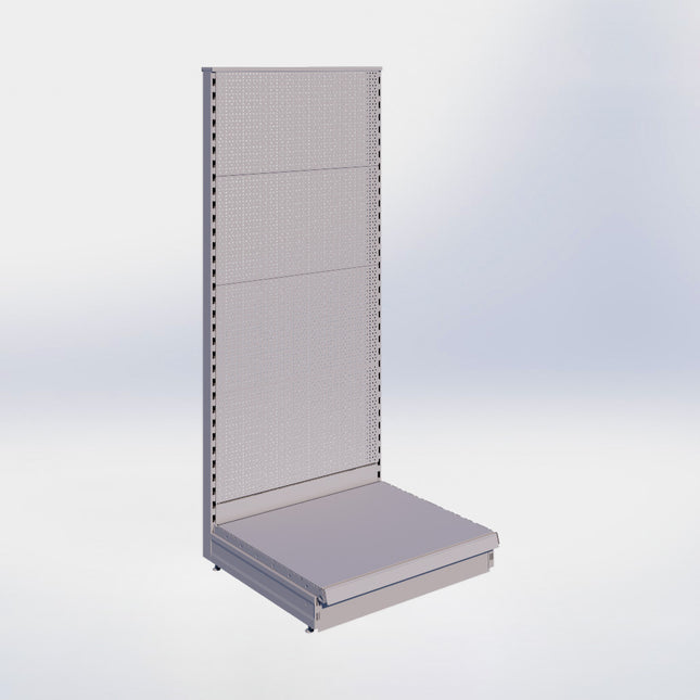 Kopstelling perforatie - H140 x B80 x D37 cm - 2 niveaus - Grijs Montagevideo: Kopstelling montage video Deze aanbouw- of beginsectie bestaat uit:- 2 staanders H140 x B3 x D6 cm RAL9006 (aanbouwsectie bevat 1 staander) - 2 voeten H16 x D37 cm RAL9006 (aanbouwsectie bevat 1 voet) - 1 legplank L80 x D37 cm RAL9006- 1 legplank L80 x D30 cm RAL9006- 2 plankdragers D30 cm RAL9006- 2 achterwanden geperforeerd H40 x B80 cm RAL9006('achterkant afgewerkt' bevat 4 achterwanden)- 1 achterwand glad H40 x B80 cm RAL9006 - 1 achterwand glad H10 x B80 cm RAL9006('achterkant afgewerkt' bevat 2 achterwanden) - 1 plint H16 x B80 cm RAL9006/RAL5002/RAL3020/RAL1018 (optioneel bij 'bodemplint en prijsetiketten')- 1 afdekkap L80 x D6 cm RAL9006 (alleen bij ‘achterkant afgewerkt’ inbegrepen)- 2 prijsstrip L80 cm RAL9006/RAL5002/RAL3020/RAL1018 (optioneel bij 'bodemplint en prijsetiketten')