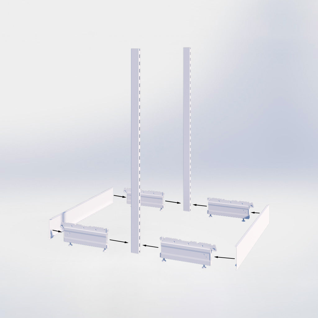 - 2 staanders H210 x B3 x D6 cm RAL9003