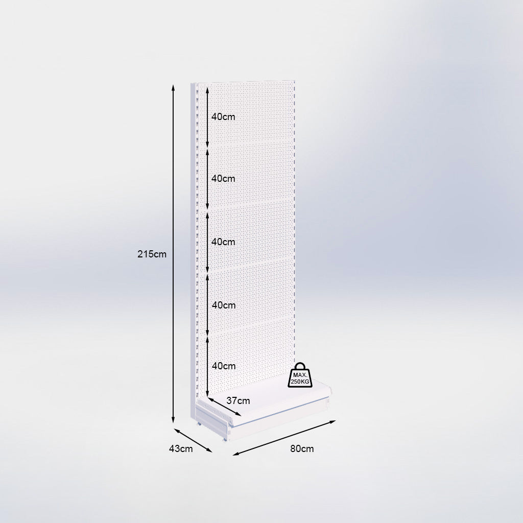 Wandstelling perforatie - H215 x B80 x D37 cm - 1 niveau - Grijs