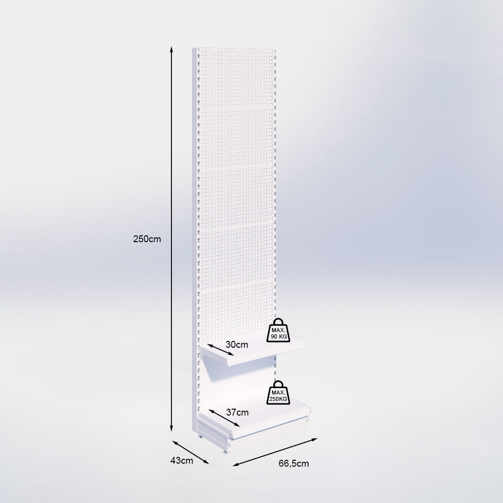 Wandstelling perforatie - H250 x B66,5 x D37 cm - 2 niveaus - Antraciet