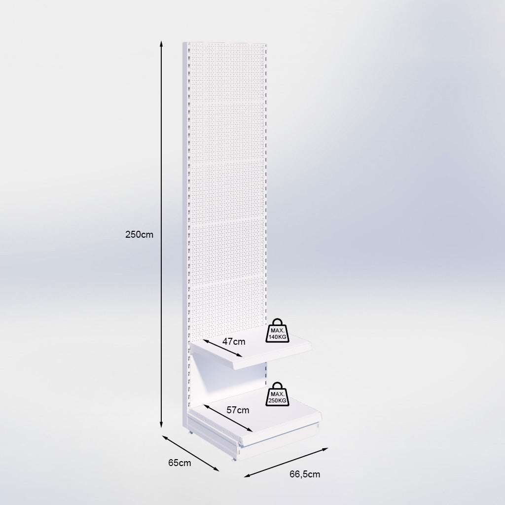Wandstelling perforatie - H250 x B66,5 x D57 cm - 2 niveaus - Antraciet