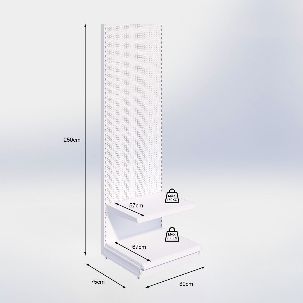 Wandstelling perforatie - H250 x B80 x D67 cm - 2 niveaus - Antraciet