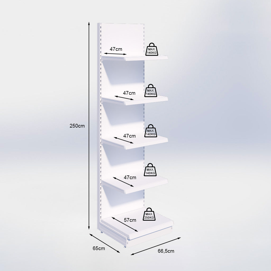 Wandstelling - H250 x B66,5 x D57 cm - 5 niveaus - Antraciet