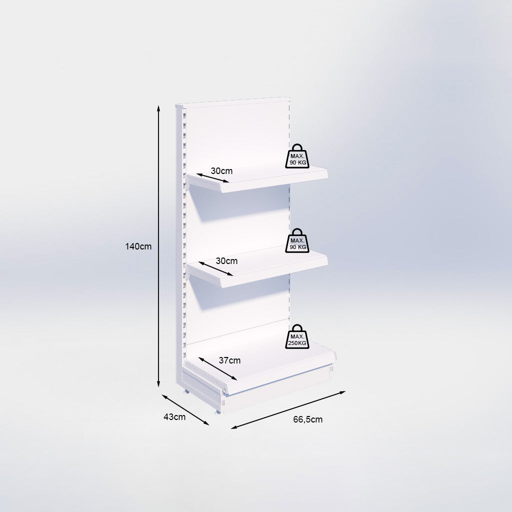 Kopstelling - H140 x B66,5 x D37 cm - 3 niveaus - Zwart