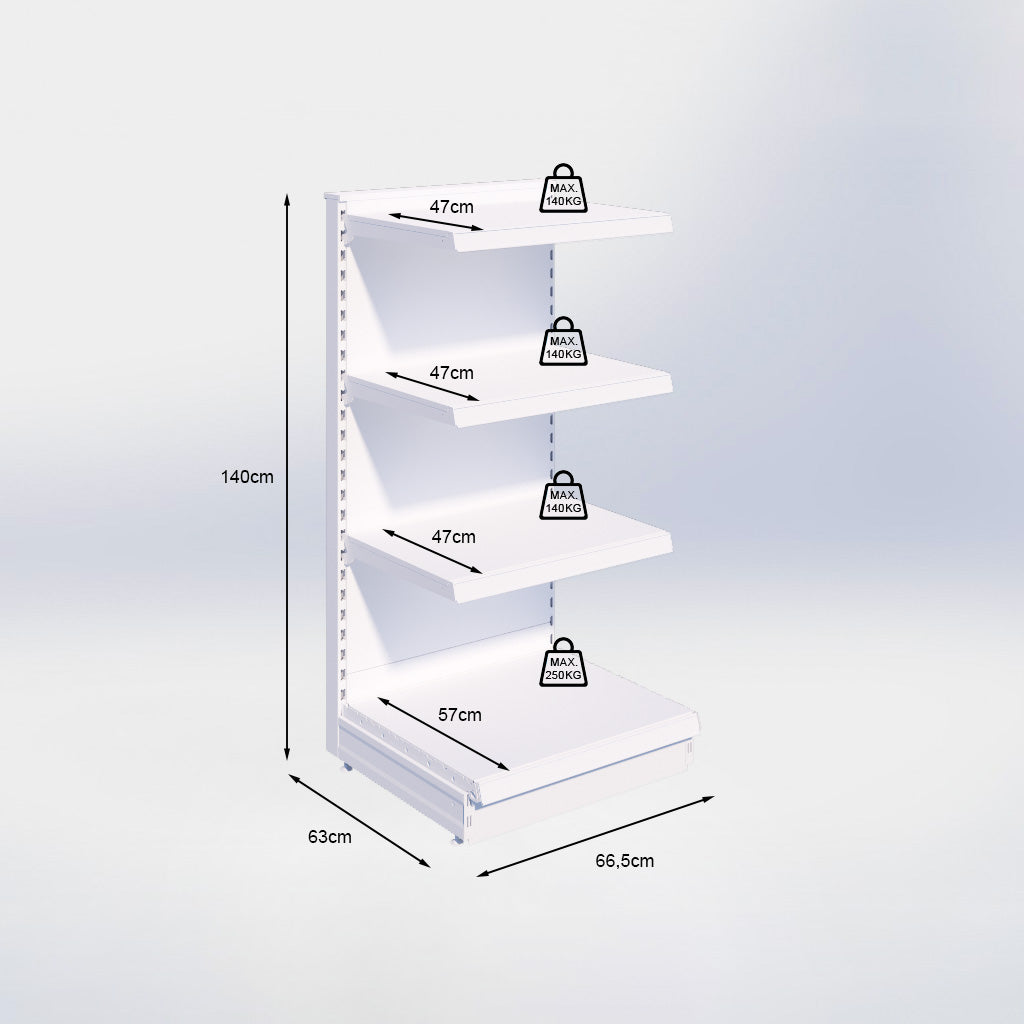 Kopstelling - H140 x B66,5 x D57 cm - 4 niveaus - Zwart
