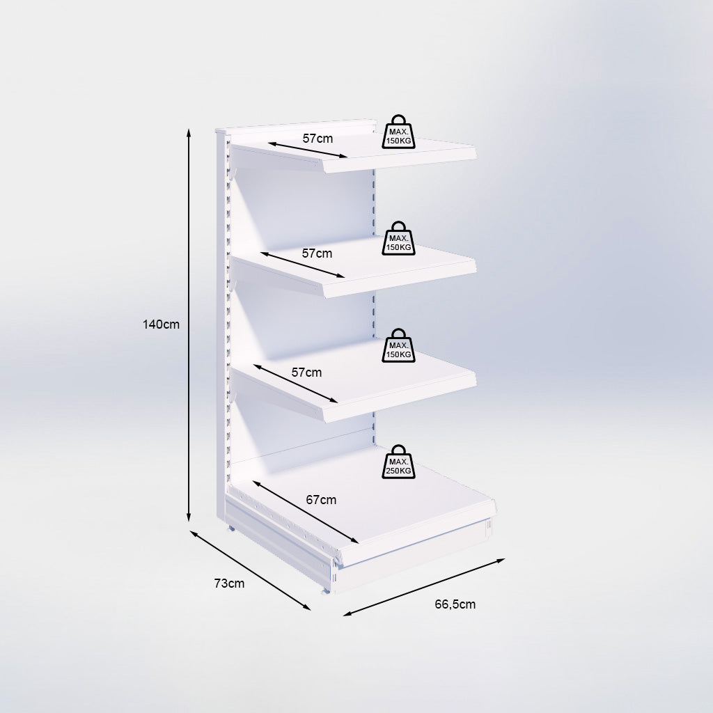Kopstelling - H140 x B66,5 x D67 cm - 4 niveaus - Zwart