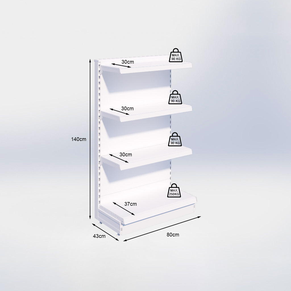 Kopstelling - H140 x B80 x D37 cm - 4 niveaus - Grijs