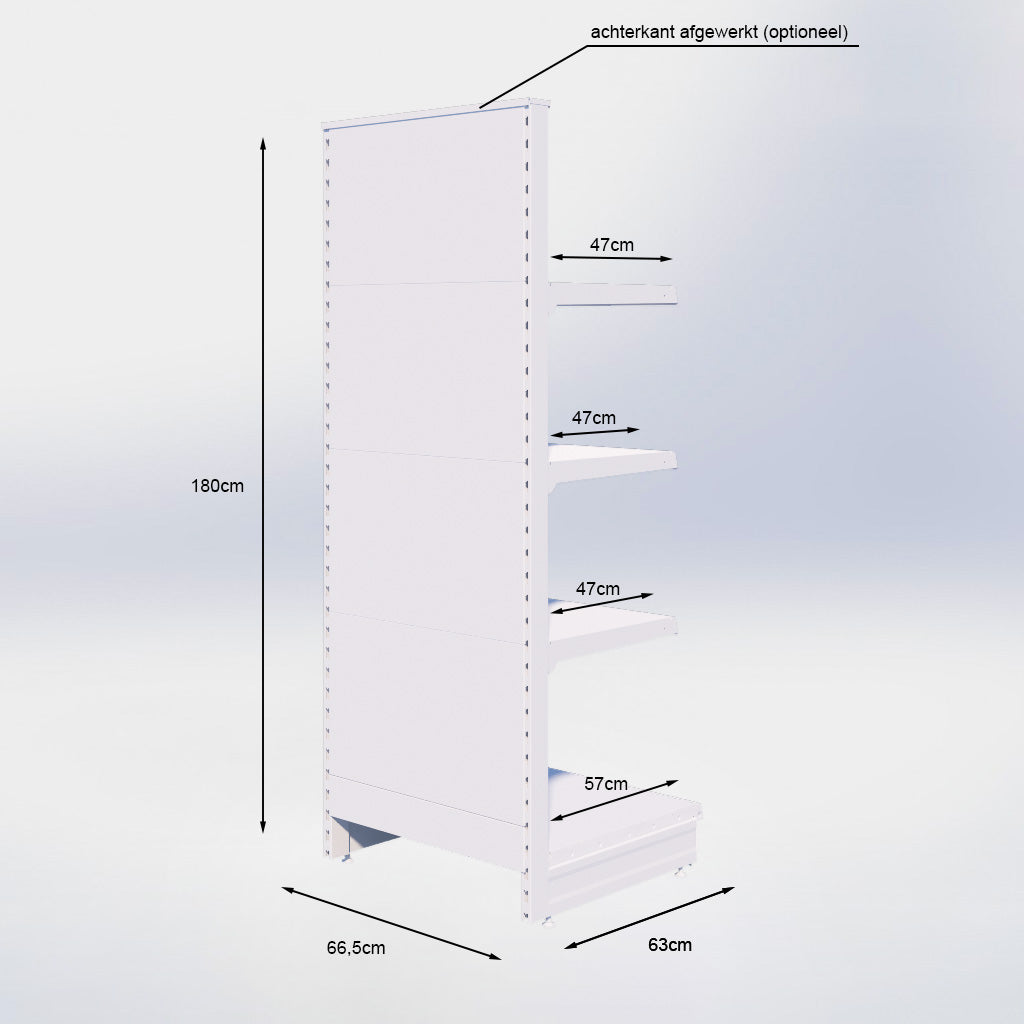 - 1 plint H16 x B66,5 cm RAL9005/RAL5002/RAL3020/RAL1018 (optioneel bij 'bodemplint en prijsetiketten')