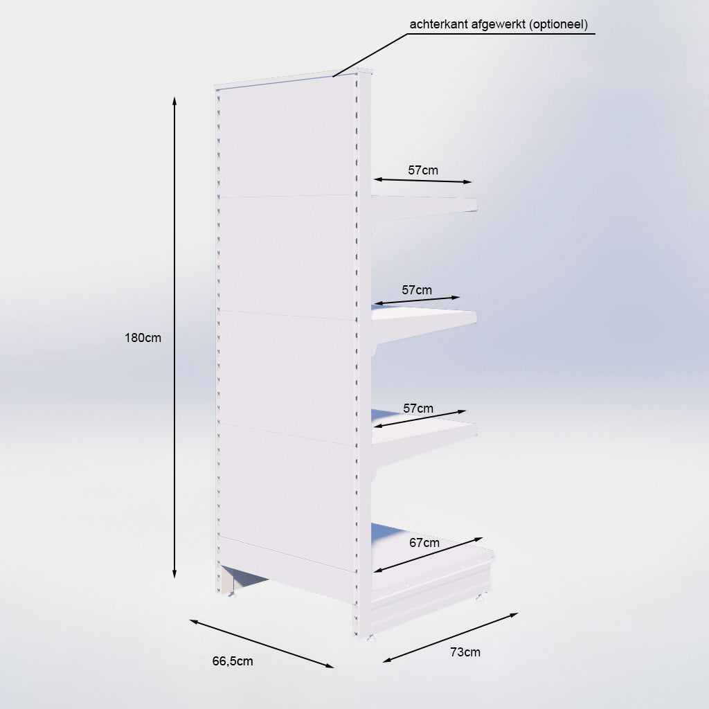 - 1 plint H16 x B66,5 cm RAL9005/RAL5002/RAL3020/RAL1018 (optioneel bij 'bodemplint en prijsetiketten')