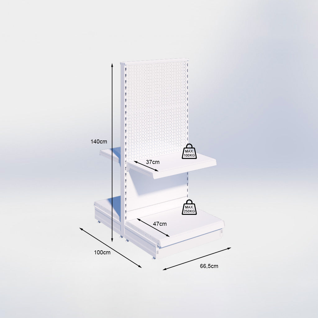 Middenstelling perforatie - H140 x B66,5 x D47 cm - 2 niveaus - Zwart