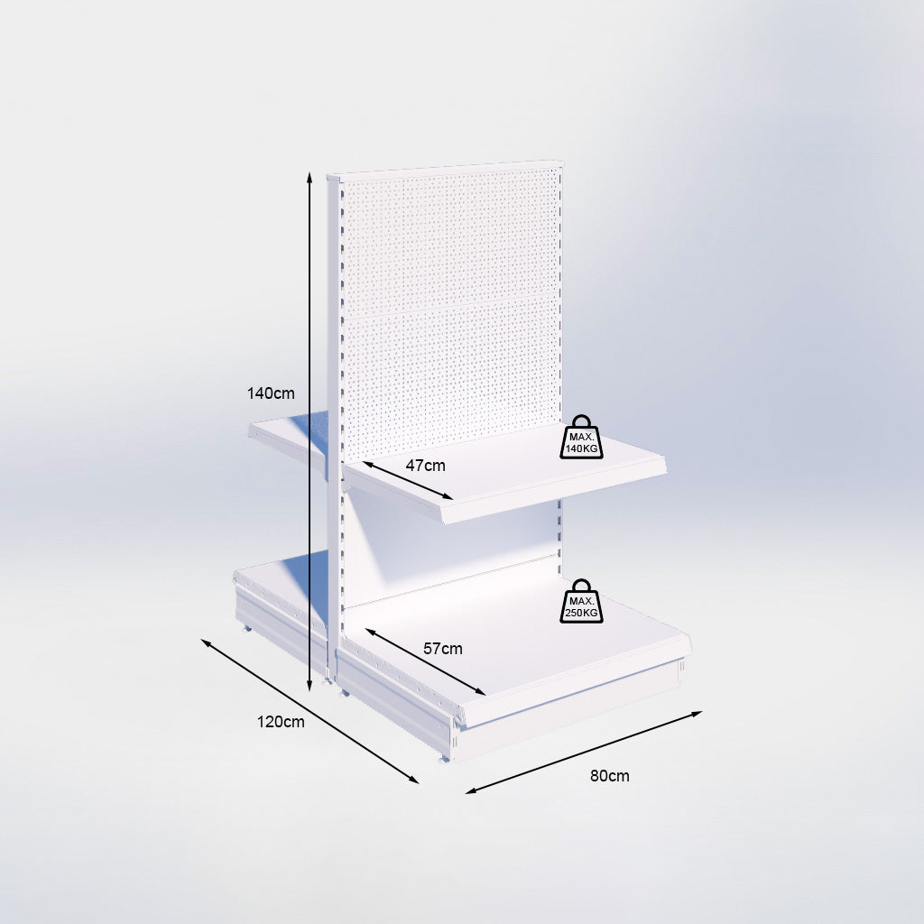 Middenstelling perforatie - H140 x B80 x D57 cm - 2 niveaus - Zwart