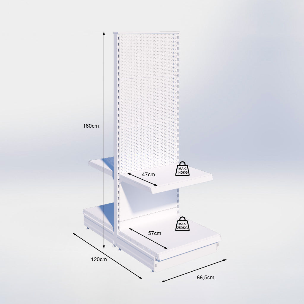 Middenstelling perforatie - H180 x B66,5 x D57 cm - 2 niveaus - Zwart