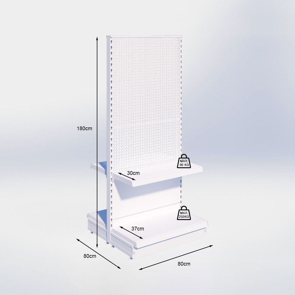 Middenstelling perforatie - H180 x B80 x D37 cm - 2 niveaus - Zwart