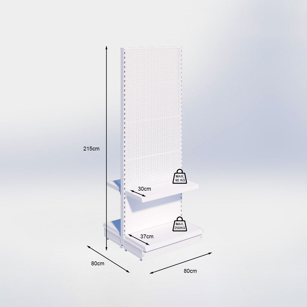 Middenstelling perforatie - H215 x B80 x D37 cm - 2 niveaus - Grijs