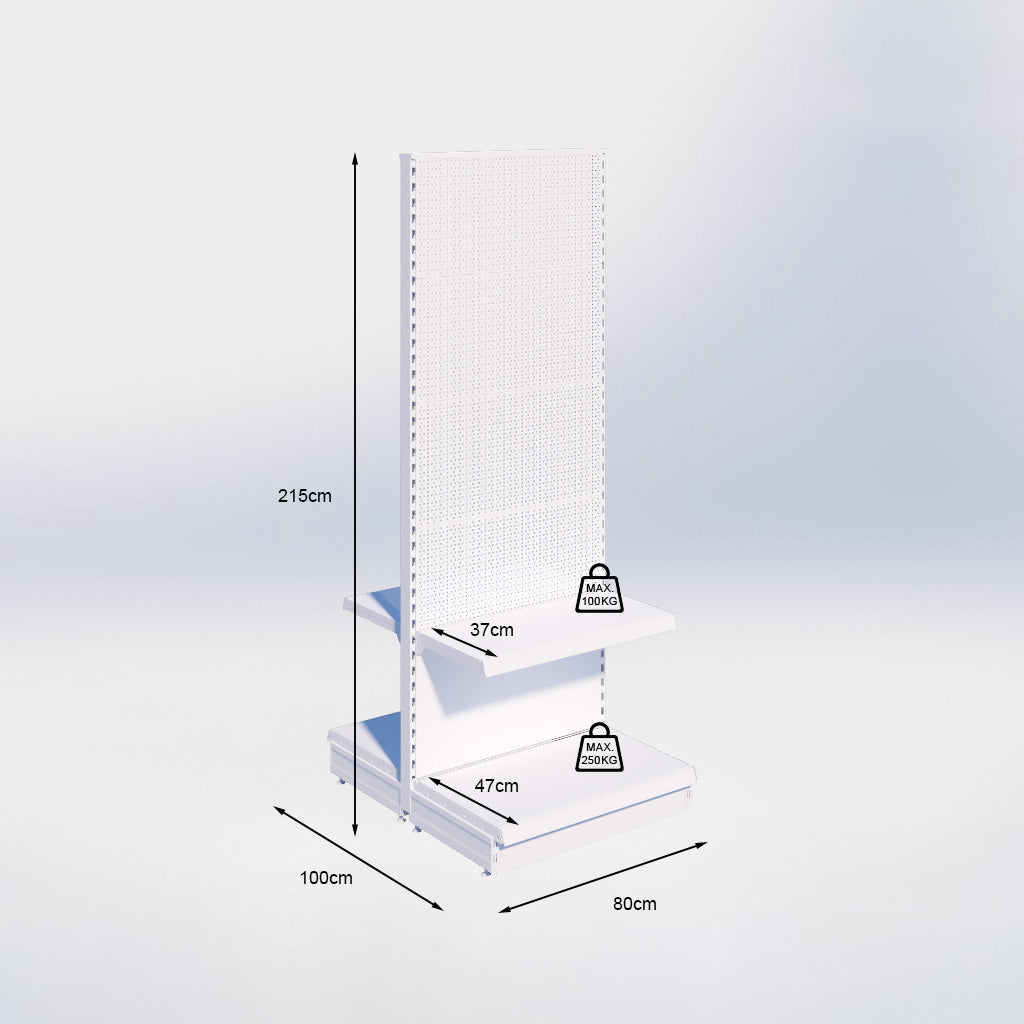 Middenstelling perforatie - H215 x B80 x D47 cm - 2 niveaus - Grijs