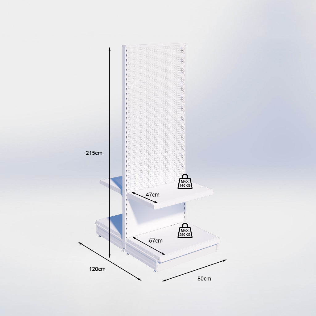 Middenstelling perforatie - H215 x B80 x D57 cm - 2 niveaus - Grijs