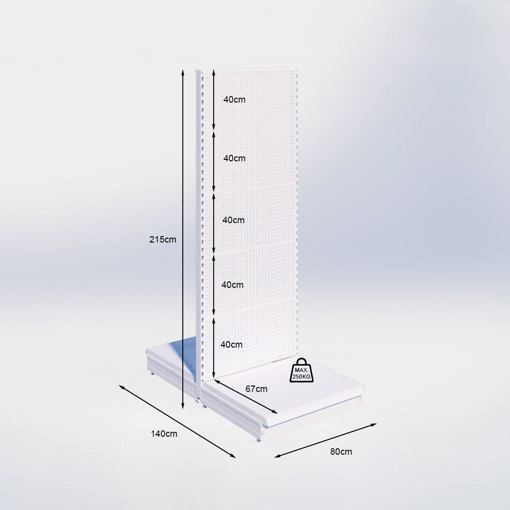Middenstelling perforatie - H215 x B80 x D67 cm - 1 niveau - Grijs